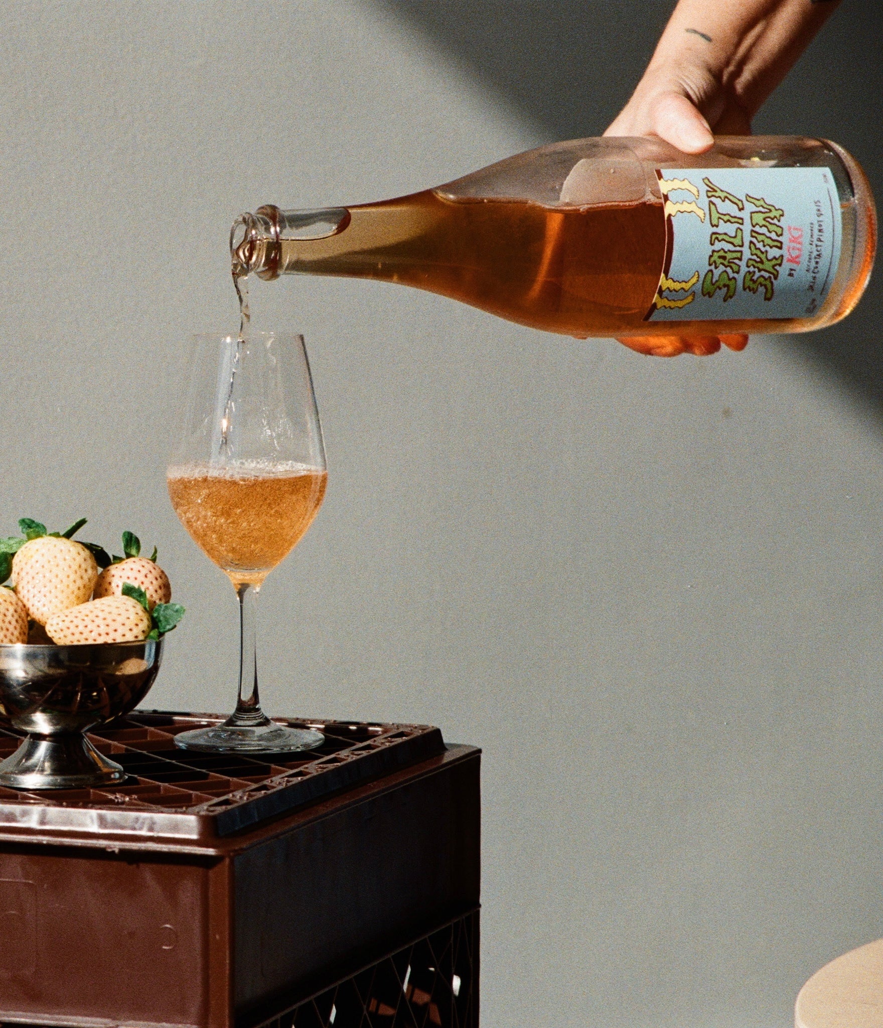 Founded here in Los Angeles by Chloe Storey and Gigi Leonard, KIKI N/A Wines is a women-owned, non-alcoholic wine project that approaches the category from a distinctly wine-first perspective. Rather than building beverages to mimic wine, KIKI starts with grapes sourced from local vineyards, ferments, ages, and treats the juice like traditional wine, then gently removes the alcohol to preserve structure, acidity, and varietal character. Their debut release, Salty Skin, is a 2023 skin-contact Pinot Gris that leans into the playful ethos of the brand. It's lightly fizzy, clean, and delightfully complex with notes of peach pits, salted citrus zest, and as they say, "that cool feeling of bare feet on tile".